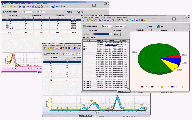 ·按照時(shí)間對(duì)來電以及Traffic進(jìn)行統(tǒng)計(jì),并且從立體折線圖中看到所選的日期內(nèi)各個(gè)時(shí)間段的呼叫分布數(shù);