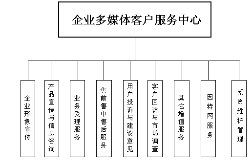 企業(yè)多媒體客戶服務(wù)中心系統(tǒng)的功能結(jié)構(gòu)如下圖所示: