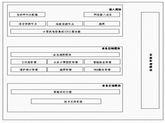 另外從CTI技術(shù)和呼叫中心的角度來看,也應(yīng)當(dāng)實(shí)現(xiàn)適當(dāng)線路數(shù)的自動(dòng)語音應(yīng)答(IVR)功能,呼叫/業(yè)務(wù)處理數(shù)據(jù)的統(tǒng)計(jì)功能,電話錄音留言功能,對(duì)主叫用戶和被叫信息號(hào)碼的有效性進(jìn)行檢查的功能,系統(tǒng)管理維護(hù)功能等才能構(gòu)成一個(gè)完整的呼叫中心系統(tǒng)。
