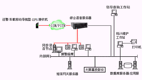 博宇科技110無(wú)線(xiàn)報(bào)警定位調(diào)度系統(tǒng)指揮調(diào)度中心的物理結(jié)構(gòu)由帶語(yǔ)音板卡的高性能工控機(jī)、CTI服務(wù)器、接警座席、統(tǒng)計(jì)維護(hù)管理工作站、數(shù)據(jù)庫(kù)服務(wù)器/應(yīng)用服務(wù)器、短消息網(wǎng)關(guān)服務(wù)器、同步數(shù)字錄音工作站、網(wǎng)絡(luò)系統(tǒng)和大屏幕投影儀等以及所開(kāi)發(fā)的有關(guān)應(yīng)用軟件構(gòu)成。