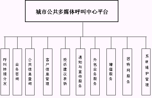 客戶利用電話、傳真、電子郵件、因特網(wǎng)、手機(jī)、短消息等進(jìn)入城市公共多媒體呼叫中心平臺(tái),本系統(tǒng)依托現(xiàn)有各專業(yè)呼叫中心/使用城市公共多媒體呼叫中心平臺(tái)租賃服務(wù)的企事業(yè)單位的各類業(yè)務(wù)技術(shù)支持系統(tǒng)和網(wǎng)絡(luò)系統(tǒng),通過人工受理或自動(dòng)語音服務(wù)等方式全天24小時(shí)不間斷地為客戶提供各種服務(wù)。