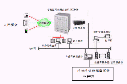 居民利用電話、傳真、手機(jī)等撥打某一特服號(hào)碼(如12348)進(jìn)入地級(jí)市法律服務(wù)熱線系統(tǒng),本系統(tǒng)依托地級(jí)市司法行政部門/法院各類業(yè)務(wù)技術(shù)支持系統(tǒng)和網(wǎng)絡(luò)系統(tǒng),通過(guò)人工受理或自動(dòng)語(yǔ)音服務(wù)等方式全天24小時(shí)不間斷地為人民群眾提供各種法律服務(wù);形成了對(duì)外服務(wù)于百姓的無(wú)形窗口,對(duì)內(nèi)管理、分析、決策系統(tǒng)相結(jié)合的多媒體呼叫中心。