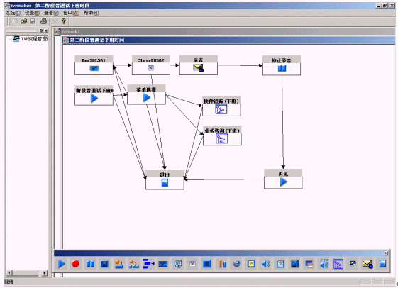 系統(tǒng)提供圖形化的語音流程生成環(huán)境,以方便用戶對語音流層進(jìn)行定制。流程生成器是一套可視化的流程設(shè)計工具,通過拖拉圖標(biāo)控件、鼠標(biāo)連線即實現(xiàn)呼叫中心CTI流程的制作,同時,通過運(yùn)行時鏈接動態(tài)連接庫(DLL),實現(xiàn)對業(yè)務(wù)數(shù)據(jù)庫的訪問;通過運(yùn)行時鏈接用戶DLL,最靈活地與用戶應(yīng)用系統(tǒng)結(jié)合;支持多種業(yè)務(wù)集成和動態(tài)流程控制,方便用戶拓展業(yè)務(wù);采用事件驅(qū)動機(jī)制、開放的結(jié)構(gòu),滿足各種語音系統(tǒng)的需要;支持不限個數(shù)、級數(shù)的IVR結(jié)構(gòu),可滿足用戶非常復(fù)雜的需求。