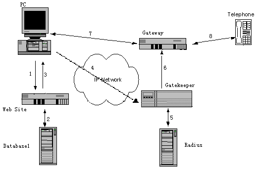 IP800服務(wù)做為先進(jìn)科技的具體應(yīng)用,以分組語音、語音編碼和壓縮、QoS等技術(shù)為核心,采用了國際標(biāo)準(zhǔn)H.323協(xié)議。系統(tǒng)由關(guān)守、網(wǎng)關(guān)、網(wǎng)管服務(wù)器、計(jì)帳服務(wù)器、檢測服務(wù)器、緩沖服務(wù)器、呼叫服務(wù)器、RS服務(wù)器等模塊組成,參考下圖: