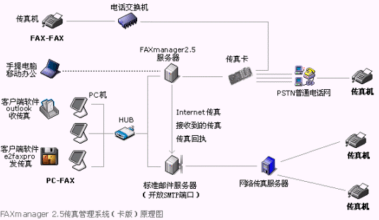 ◆ 對(duì)于少部分手寫傳真或票據(jù)傳真,可以通過Fax-To-Fax的方式先提交到FAXmamager2.5服務(wù)器端,再由服務(wù)器發(fā)送給對(duì)方,這樣,可以將這樣的傳真納入傳真系統(tǒng)一起管理