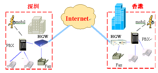 VOIP即是Voice Over IP,是把話音或傳真轉(zhuǎn)換成數(shù)據(jù),然后與數(shù)據(jù)一起共享同一個IP網(wǎng)絡(luò)(Internet互聯(lián)網(wǎng))。深圳海恒科技有限公司提供的企業(yè)網(wǎng)通訊系統(tǒng),是一種直接接普通電話,通過Internet網(wǎng)絡(luò)撥打國際長途電話的設(shè)備,通話質(zhì)量接近IDD長途電話,廣泛適用于國內(nèi)外中小型外向型企業(yè)。使用海恒企業(yè)網(wǎng)絡(luò)通訊系統(tǒng),企業(yè)內(nèi)部通訊(包括電話和傳真)所有費用都將全部為零。