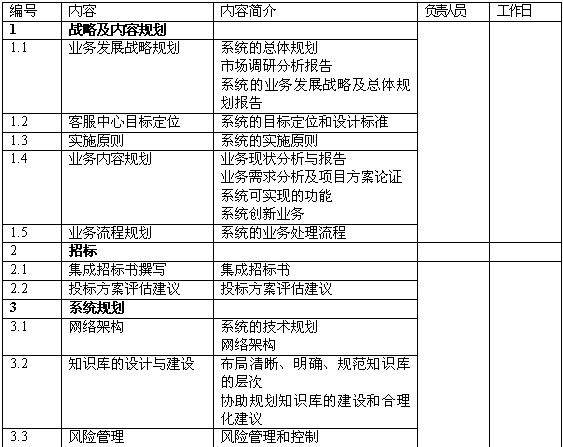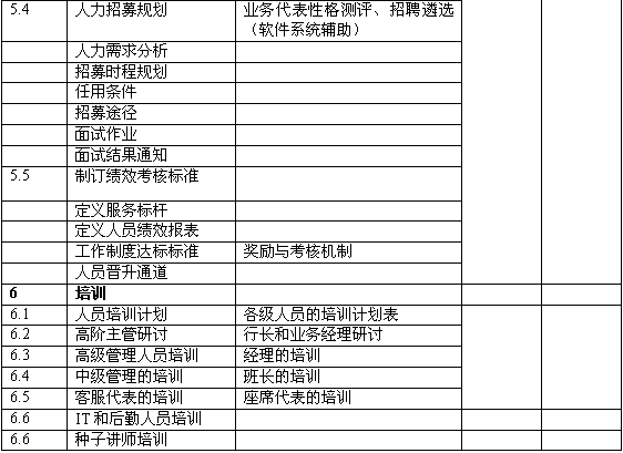6.提出了未來客戶滿意度、分流柜面比率、產(chǎn)品促銷量等方面的量化比率;針對客服中心的主要業(yè)務(wù)提供量化的目標(biāo),并提出達(dá)成目標(biāo)的前提條件;對未來人員和系統(tǒng)規(guī)模提供量化預(yù)估。