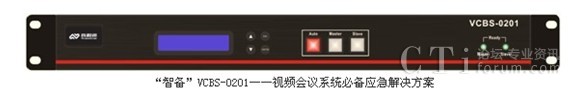 在視頻會(huì)議召開的過(guò)程中,主會(huì)場(chǎng)視頻終端等設(shè)備如果發(fā)生故障時(shí)其音視頻信號(hào)會(huì)發(fā)生中斷,由此將會(huì)使整個(gè)視頻會(huì)議無(wú)法繼續(xù)進(jìn)行,傳統(tǒng)的解決辦法是配置第二套視頻終端作為冷備份,當(dāng)主設(shè)備發(fā)生中斷時(shí)由系統(tǒng)維護(hù)人員以手工方式切換至備用設(shè)備。北京真視通自主研發(fā)的智備(產(chǎn)品型號(hào):VCBS-0201),解決了主會(huì)場(chǎng)主備終端的自動(dòng)、快速、無(wú)縫切換的問(wèn)題。