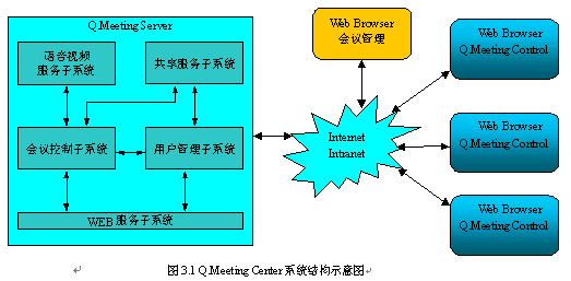 由于采用基于WEB的客戶端,Q.Meeting Center的部署是比較簡(jiǎn)單的。只需按Q.Meeting Server的運(yùn)行環(huán)境要求安裝配置好會(huì)議服務(wù)器即可。主持人和其他與會(huì)者使用普通PC機(jī)通過(guò)WEB瀏覽器訪問(wèn)會(huì)議URL地址即可參加會(huì)議。