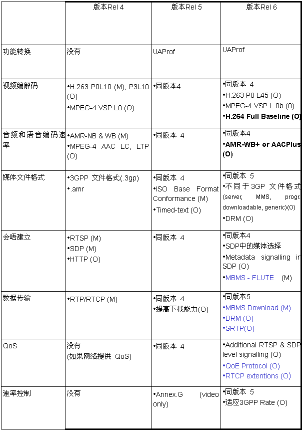 - 3GPP PSS隨著內在的向后兼容性,從簡單的流式媒體服務規(guī)范(版本Rel 4)發(fā)展到更先進一代的服務規(guī)范(版本Rel 6)。