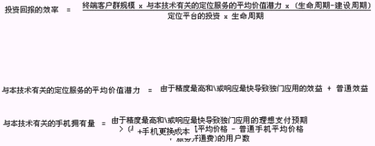 主要的因素有:終端客戶(hù)群的規(guī)模、定位平臺(tái)的投資、建設(shè)周期,請(qǐng)看下列公式(未經(jīng)實(shí)際統(tǒng)計(jì)驗(yàn)證,僅僅用于估算):