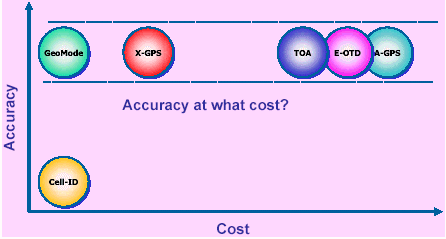 平臺(tái)投資:Cell ID最低,GPS次之,GeoMode次之,E-OTD和TDOA最高;