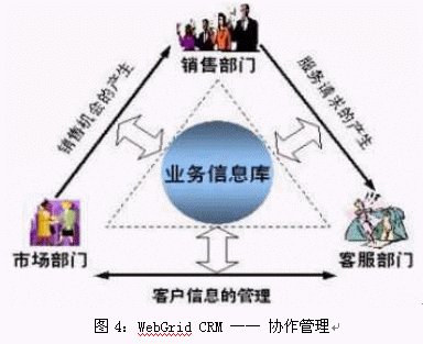 企業(yè)的銷售、服務(wù)和市場(chǎng)業(yè)務(wù)有一個(gè)共同的特點(diǎn),就是都與客戶打交道,都是以"客戶為中心"開展業(yè)務(wù)的。面對(duì)共同的客戶,需要共享相同的客戶信息。與此同時(shí),各部門的業(yè)務(wù)也不是孤立的,而是在互動(dòng)的過程中相互促進(jìn),共同提升。WebGrid CRM系統(tǒng)根據(jù)CRM理念而設(shè)計(jì),將銷售、市場(chǎng)和服務(wù)業(yè)務(wù)進(jìn)行整合,提供了統(tǒng)一的操作平臺(tái),實(shí)現(xiàn)了業(yè)務(wù)信息的共享。此外,WebGrid CRM制定了靈活的工作流程,實(shí)現(xiàn)了各個(gè)業(yè)務(wù)部門之間的信息交互:由市場(chǎng)活動(dòng)可以生成銷售機(jī)會(huì);服務(wù)過程中的銷售意向也可以通過反饋提交到銷售部門中去……WebGrid CRM的這一功能消除了市場(chǎng)、銷售和服務(wù)各部門之間的信息孤島,將三個(gè)部門緊密結(jié)合,形成一個(gè)有機(jī)的整體,從而提升了企業(yè)整體的運(yùn)營效率。