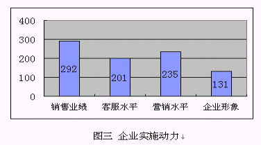 3) 提升企業(yè)形象:很多受訪企業(yè)特別是服務(wù)業(yè),已經(jīng)建立客戶忠誠度放在了很重要的位置,但比較其它幾個(gè)直接動(dòng)因,比例偏低,這也說明"以客戶為中心"的觀念還沒有"以利潤(rùn)為中心"強(qiáng)烈。