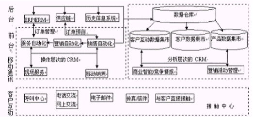 在企業(yè)中對(duì)于客戶關(guān)系資源管理方面可歸納為兩個(gè)方面的問題。其一,企業(yè)的銷售、營銷和客戶服務(wù)部門難以獲得所需的客戶互動(dòng)信息。其次,來自銷售、客戶服務(wù)、市場(chǎng)、制造、庫存等部門的信息分散在企業(yè)內(nèi),這些零散的信息使得無法對(duì)客戶有全面的了解,各部門難以在統(tǒng)一的信息的基礎(chǔ)上面對(duì)客戶。這需要各部門對(duì)面向客戶的各項(xiàng)信息和活動(dòng)進(jìn)行集成,組建一個(gè)以客戶為中心的企業(yè),實(shí)現(xiàn)對(duì)面向客戶的活動(dòng)的全面管理。