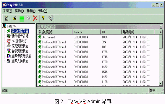 兩個集成環(huán)境,EasyIVR Studio負(fù)責(zé)自動語音流程的編輯和調(diào)試,EasyIVR Admin負(fù)責(zé)對語音卡硬件的操作和按照EasyIVR Studio生成的具體語音流程的實(shí)現(xiàn)。EasyIVR綜合實(shí)現(xiàn)了呼叫中心中IVR(Interactive Voice Response交互式語音應(yīng)答)、IFR(Interactive Fax Response 交互式傳真應(yīng)答)和自動外撥服務(wù)的功能。