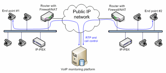 VoIP應(yīng)用的質(zhì)量監(jiān)控分為主動式和被動式兩種實現(xiàn)方式。主動式的系統(tǒng)能產(chǎn)生呼叫,而被動式的系統(tǒng)只是監(jiān)測進行中的呼叫。兩種方法各有優(yōu)勢。VoIP監(jiān)控方案的架構(gòu)取決于網(wǎng)絡(luò)Edge設(shè)備的類型和結(jié)構(gòu)。有些大型企業(yè)采用的VoIP網(wǎng)絡(luò)配備了一種特殊設(shè)備,叫SBC(Session boarder controller),除了完成類似路由器的功能外,還能完成流量分配、數(shù)據(jù)/語音信號加密以及業(yè)務(wù)質(zhì)量控制等功能。此外,通過過濾和替換數(shù)據(jù)包內(nèi)的、與用戶有關(guān)的特定信息,SBC還能隱藏公司的網(wǎng)絡(luò)拓撲結(jié)構(gòu)和用戶信息,不被外部的IP世界所知道。