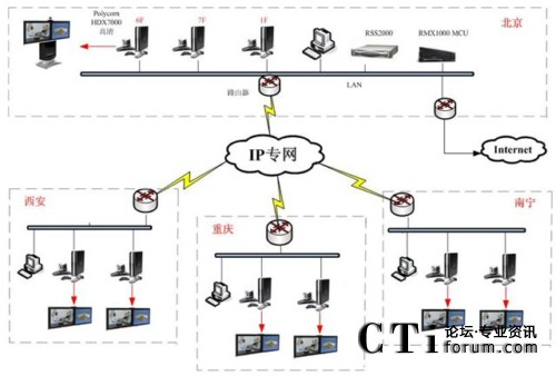 MCU,1臺RSS2000錄播服務器,9臺HDX7002XL組成,在應用上分為兩部分:主要核心設備---采用寶利通(POLYCOM)最新技術的多點控制單元RMX1016C及高清錄播RSS2000,滿足培訓中心對整個系統(tǒng)的會議召集及管理,系統(tǒng)還可以進行高清的錄播直播,把相關的培訓內容制作成培訓課件存檔分發(fā)給培訓學員;其他各地單位設備:分別采用高清硬件終端HDX7002及高清實物展臺、高清DV等各類會議室設備,終端支持雙流、實物展臺及移動DV圖像的輸入,根據不同的培訓需求切換不同的圖像場景,為培訓中心設計了一套完整視頻培訓解決方案。