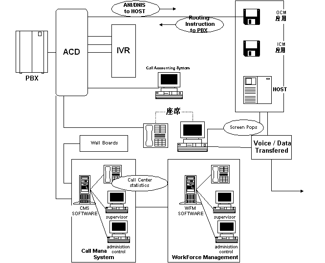 PSTN中繼線路經(jīng)由PBX路由轉(zhuǎn)接到呼叫中心中的個人電話或其它電話設(shè)備上,即常說的交換機(jī)(switch)。領(lǐng)先的交換機(jī)制造商,象朗訊(Lucent)、北電(Nortel)、Aspect和Rockwell,等等,都提供智能化的交換機(jī)硬件,其中最重要的是自動呼叫分配功能,自動呼叫分配器(ACD)是一種特殊的交換機(jī)(排隊(duì)機(jī)),用來處理大量密集的話務(wù)并根據(jù)技能優(yōu)先算法和空閑優(yōu)先算法將呼叫智能地轉(zhuǎn)接到合適的座席話務(wù)員。