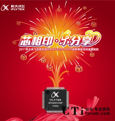 “芯” 相印,樂(lè)分享!為答謝并回饋廣大新老用戶(hù),2011科大訊飛語(yǔ)音合成芯片XFS3031CNP迎新贈(zèng)送活動(dòng)12月28日起溫暖起航!