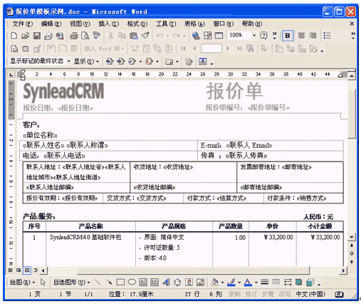 SynleadCRM企業(yè)版4.0很好地滿足了銷售自動(dòng)化管理、服務(wù)自動(dòng)化管理的上述需求,提供了開(kāi)放的客戶化Word模板,使得用戶企業(yè)能夠根據(jù)實(shí)際情況不斷擴(kuò)展該應(yīng)用。客戶化模板直接在Word中編輯,可直觀、方便地插入合并域字段或代碼,只要對(duì)Word稍加了解就可勝任模板維護(hù)工作。