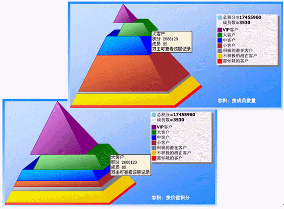 把事務處理拓寬到精確化客服方面,強調(diào)客戶關(guān)系/銷售/服務管理自動化程度,注重數(shù)據(jù)挖掘分析,更在意CRM系統(tǒng)的功能深度、實現(xiàn)機制和管理方法內(nèi)涵。例如對服務管理,除了服務請求,衍生項還包括客戶資產(chǎn)、服務合約、知識庫。即便對銷售管理,內(nèi)涵也比低端應用更豐富,只有產(chǎn)品管理不夠,衍生項還包括自動報價所需的價格方案;僅有合同管理也不夠,衍生項還包括報價單、提議;衍生項還包括競爭對手管理、存貨管理、銷售預測分析。中低端CRM應用,商務前沿銷售和服務管理更加完整、精確,用戶企業(yè)更加注意到購買實施服務的重要性,但再高層面的市場營銷及客戶金字塔分析等并不作為關(guān)鍵需求。