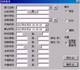 (包括中繼線)進行話單查詢、打印電話明細單。