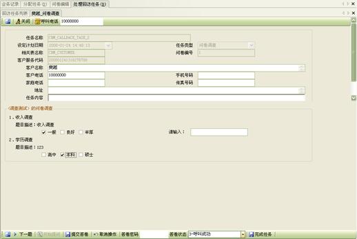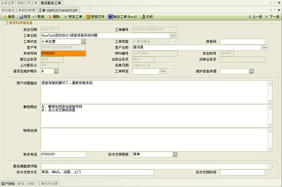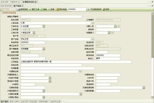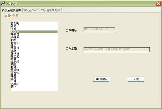 3) 工作流閉環(huán)、客戶通話歷史,客戶聯(lián)系歷史,工單流轉(zhuǎn):工作流系統(tǒng)是通過(guò)工單實(shí)現(xiàn)各工作流環(huán)節(jié)的聯(lián)系以及工作流的定義管理,工作流狀態(tài)查詢、更改的。操作員可根據(jù)用戶的不同業(yè)務(wù)請(qǐng)求,建立相應(yīng)的工單記錄,并對(duì)該事后處理過(guò)程進(jìn)行跟蹤;也可對(duì)要處理的事務(wù)形成工單轉(zhuǎn)給相應(yīng)的操作員,并跟蹤該工單的處理過(guò)程;可定期提示操作員處理要過(guò)期的工單,以提高服務(wù)質(zhì)量;每次處理過(guò)程都會(huì)有詳細(xì)的記錄,以便統(tǒng)計(jì)查詢 。如圖8、9、10: