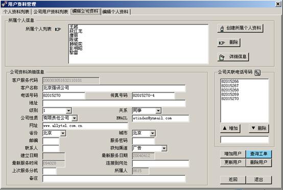 2)當(dāng)有外線電話打入到坐席時(shí),在坐席分機(jī)振鈴的同時(shí)UltraCRM系統(tǒng)就可以根據(jù)來(lái)電號(hào)碼自動(dòng)彈出客戶信息。方便坐席在接答前就可以初步了解該客戶的相關(guān)信息,如圖3所示: