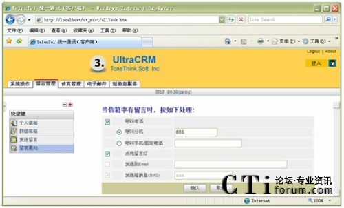 電話通知:如果個(gè)人信箱有新留言則可設(shè)置留言通知到分機(jī)、手機(jī)、外線電話等。
