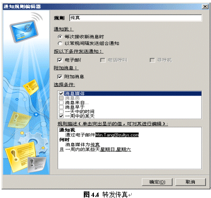 用戶還可以設(shè)定當(dāng)有新的傳真時(shí),將傳真(或傳真通知)發(fā)送到指定的電子郵件信箱: