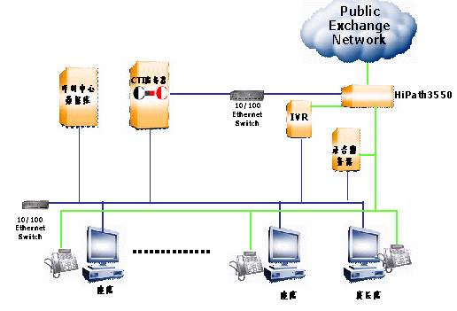 搜易得呼叫中心系統(tǒng)采用SIEMENS HiPath3000通信平臺(tái),融合了商路通公司(www.SynRoute.com)的CTI中間件,為呼叫中心系統(tǒng)的應(yīng)用開(kāi)發(fā)提供了功能完善、系統(tǒng)穩(wěn)定、可靠性高、擴(kuò)展性強(qiáng)等特點(diǎn)的呼叫中心開(kāi)發(fā)平臺(tái)。根據(jù)客戶業(yè)務(wù)需求實(shí)現(xiàn)呼叫中心系統(tǒng)主要功能:自動(dòng)語(yǔ)音應(yīng)答、ACD分配、統(tǒng)計(jì)報(bào)表、監(jiān)控、錄音等;其中呼叫中心平臺(tái)中的業(yè)務(wù)系統(tǒng)還包含了客戶資料管理、產(chǎn)品資料管理、售后服務(wù)管理、售前支持管理、問(wèn)卷調(diào)查管理、訂單監(jiān)督管理。整套系統(tǒng)很好地滿足了該中心的業(yè)務(wù)需求。
