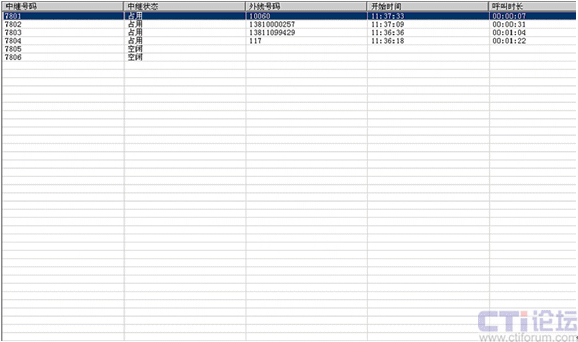 如圖3所示,管理員能得到中繼來電的明細(xì)信息,來電號(hào)碼,來電時(shí)長(zhǎng),都有詳細(xì)數(shù)據(jù)。
