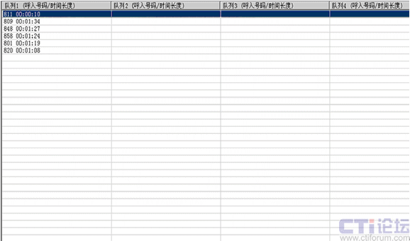 如圖4所示,管理員能得到隊(duì)列排隊(duì)的詳細(xì)信息如:來電號(hào)碼,等待時(shí)間。