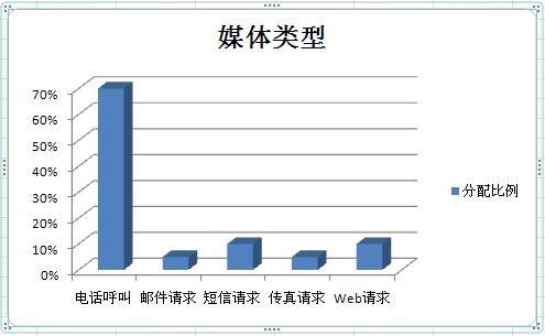 從電話呼叫中心角度來考慮,不同媒體如果只是電話呼叫的不同類型。例如,電話呼叫是咨詢,郵件是查詢、短信是受理、傳真是投訴、Web請求是預訂。