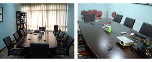 這是在一間典型的會(huì)議室中使用audec多媒體語(yǔ)音引擎做視頻會(huì)議回音消除的測(cè)試。會(huì)議室是一個(gè)5M*3M*3M大小的空間,3面墻是水泥墻,沒有裝飾,屋頂是不帶孔的光滑吊頂,另外一面是玻璃,地板是實(shí)木復(fù)合地板,所以整個(gè)會(huì)議會(huì)議室內(nèi)的回聲反射比較強(qiáng)烈,并且我們還在會(huì)議室內(nèi)安置了分別指向不方向的四個(gè)高靈敏度介面麥克風(fēng)。