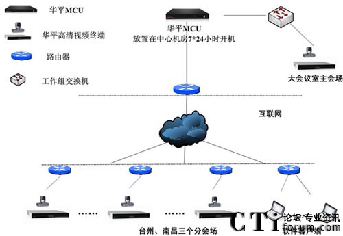 華平根據(jù)東森控股的實(shí)際需求,為用戶搭建了覆蓋上海、南昌、臺(tái)州辦公區(qū)、臺(tái)州營業(yè)部的高標(biāo)清混合組網(wǎng)和軟硬件混合組網(wǎng)方案。系統(tǒng)基于公共互聯(lián)網(wǎng)實(shí)現(xiàn)部署,并充分利用了華平多種網(wǎng)絡(luò)接入混合的優(yōu)勢(shì),并采取MCU雙網(wǎng)卡接入解決方案,全面實(shí)現(xiàn)了電信、網(wǎng)通的網(wǎng)絡(luò)良好互通,系統(tǒng)極大的拓展了應(yīng)用的范圍,即使在差旅途中,只要能接入Internet網(wǎng)絡(luò),用戶就可以輕松地參與會(huì)議交流,如同身與各方坐一個(gè)會(huì)議室。系統(tǒng)還提供強(qiáng)大的數(shù)據(jù)輔助功能,參會(huì)者可以將各種需要交流的數(shù)據(jù)、圖形、報(bào)表、文字等信息同步顯示給所有相關(guān)人員,方便的進(jìn)行工作交流,業(yè)務(wù)匯報(bào)和討論等,使異地溝通變的更加簡單和自如。