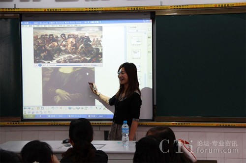 藝術(shù)學(xué)院的老師在講解《蒙娜麗莎》作品構(gòu)圖的同時(shí),點(diǎn)擊PPT的文字鏈接,出現(xiàn)視頻,通過(guò)視頻向同學(xué)介紹達(dá)芬奇的生活年代與其它相關(guān)作品。無(wú)需切換PPT,無(wú)需尋找相關(guān)資料,節(jié)省時(shí)間,也提高了講課的連貫性。