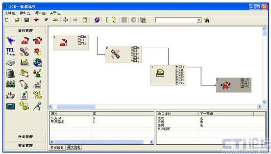 簽入、簽出、置閑、置忙、應(yīng)答、掛機(jī)、保持/取回、咨詢/取消咨詢、兩路切換、轉(zhuǎn)接、三方會(huì)議、轉(zhuǎn)技能組、外呼等;豐富的業(yè)務(wù)系統(tǒng)功能包括:工單管理、知識(shí)庫、客戶管理、質(zhì)檢管理、外撥管理、業(yè)務(wù)統(tǒng)計(jì)報(bào)表、公告板、郵件管理、系統(tǒng)管理、前臺(tái)業(yè)務(wù)(坐席)功能、班長功能、數(shù)據(jù)同步、全程錄音、業(yè)務(wù)處理等,這些功能不作詳細(xì)介紹。IVR流程也是采用非常先進(jìn)的圖形化流程編輯器,通過簡單的拖、拉圖標(biāo)方式即可實(shí)現(xiàn)對IVR流程的定制: