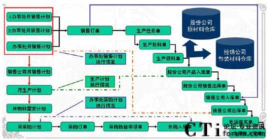 從上圖可以看出,河套酒業(yè)包括股份公司、生產(chǎn)公司、銷售公司、辦事處等獨(dú)立核算的實體或分子公司,但是實際上整個供應(yīng)鏈系統(tǒng)是完全集成在一起的。孤立的解決上述問題,只能帶來重復(fù)工作量、公司間相同業(yè)務(wù)不一致以及滯后、市場反應(yīng)不及時等問題。因此跨公司實體,實現(xiàn)銷售計劃、生產(chǎn)計劃、采購計劃三大計劃集成、物流集成是白酒類生產(chǎn)企業(yè)供應(yīng)鏈系統(tǒng)信息化的關(guān)鍵。