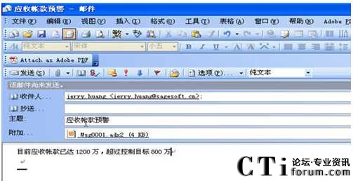 通過與ERP 集成的預(yù)警平臺,河套酒業(yè)可以根據(jù)需要監(jiān)控任意環(huán)節(jié),向相應(yīng)管理者發(fā)布預(yù)警信息。可以針對同一個業(yè)務(wù)中不同的業(yè)務(wù)動作定義監(jiān)控,可以集中監(jiān)控,也可以根據(jù)管理層的要求對特定條件異常業(yè)務(wù)進(jìn)行監(jiān)管。在異常業(yè)務(wù)發(fā)生的同時,通過郵件或短信等指定形式主動向監(jiān)管進(jìn)行報告。如下圖對整體應(yīng)收帳款超過指定額度的預(yù)警。