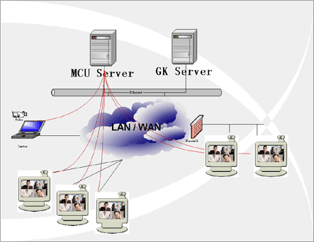 在企業(yè)內部局域網(wǎng)與INTERNET連接處,會設置FIREWALL防火墻,而IP語音視頻會議采用的ITU H.323協(xié)議本身不具備穿越防火墻的特性,因此需要防火墻穿越軟件。