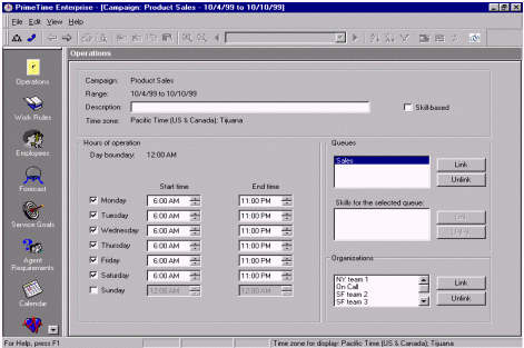 絕大多數(shù)的WFMS可以通過歷史數(shù)據(jù)和人員情況自動生成排班表。而且它也只是簡單的根據(jù)呼叫中心的運(yùn)營時(shí)間來排班。舉個(gè)例子,某個(gè)呼叫中心在排班是有兩個(gè)班,一個(gè)工作時(shí)間是早7點(diǎn)到下午3點(diǎn),另一個(gè)是早九點(diǎn)到晚五點(diǎn),這就意味著不僅要安排早、晚休息,還要顧及到午休的時(shí)間。休息的安排要保證能夠在電話的持續(xù)中也能有持續(xù)的人員保證電話量。在這個(gè)自動化軟件的之中還有一個(gè)因素要能夠?qū)崿F(xiàn)自動化--人的因素。例如:Mary和Jane想同時(shí)去吃午餐,然而自動化的排班表并不是這樣的。然而主管根據(jù)當(dāng)時(shí)的話務(wù)量情況和工作狀況以及工作規(guī)范批準(zhǔn)了Mary和Jane共享午餐的要求,而WFMS就要能夠處理這樣很有可能發(fā)生,而且是合理的情況。排班表的更改應(yīng)該就是簡單的拖拽圖標(biāo)就應(yīng)該能夠?qū)崿F(xiàn)的功能,并且能夠在這種更改會對預(yù)測的話務(wù)量差生不好影響時(shí),拒絕這種拖拽行為。
