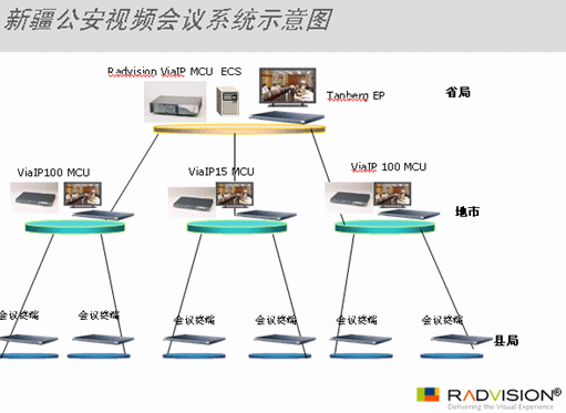 針對新疆公安廳的地理位置、網(wǎng)絡條件及應用需求,RADVISION為其度身訂造了一整套的視頻會議解決方案。