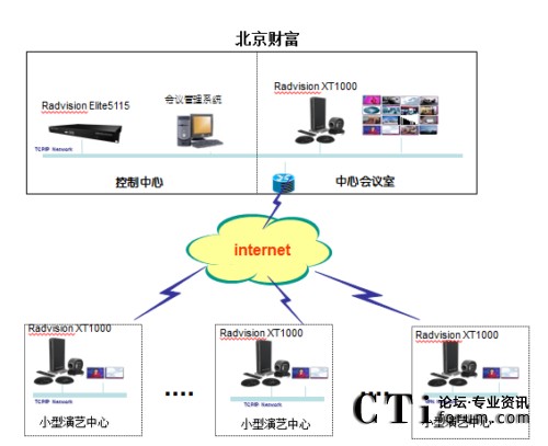 通過(guò)多次激烈的討論和無(wú)數(shù)次的論證,北京市財(cái)富中心領(lǐng)導(dǎo)最終決定通過(guò)打造一套高清視頻會(huì)議平臺(tái)系統(tǒng)來(lái)解決這一棘手的問(wèn)題。財(cái)富中心的領(lǐng)導(dǎo)希望通過(guò)這套高清視頻會(huì)議平臺(tái)系統(tǒng)來(lái)提升全體員工的整體工作效率。該項(xiàng)目最終以RADVISION Elite MCU為多媒體通信平臺(tái)核心進(jìn)行搭建,前期以多媒體會(huì)議室及演藝中心為主要接入點(diǎn),通過(guò)RADVISION SCOPIA XT1000高清會(huì)議室終端來(lái)實(shí)現(xiàn)高清1080P的視音頻交互;同時(shí),希望在后期的建設(shè)中,能夠通過(guò)固定電話(huà)、移動(dòng)電話(huà)以及3G網(wǎng)絡(luò)的接入,來(lái)實(shí)現(xiàn)真正的多媒體統(tǒng)一通信。