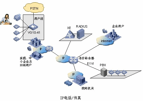 - 用戶通過VG 語音網(wǎng)關(guān)不僅可以接入到寬帶城域網(wǎng)上,而且還可以經(jīng)過Internet和國際用戶進(jìn)行IP電話/傳真通訊。