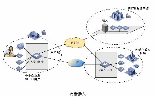 - 同時,VG 語音網(wǎng)關(guān)還提供FXO接口直接連接本地市話PSTN網(wǎng)絡(luò),從而實現(xiàn)SOHO用戶直接與市話連通,這種市話接入方式可以作為IP電話應(yīng)用的靈活備份,一方面節(jié)省了用戶投資,另一方面提供了意外情況(如停電)的處理方案。