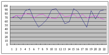 從平均數(shù)的分析方法來(lái)看,兩個(gè)呼叫中心這段時(shí)間的平均服務(wù)水平都是一樣的,都是73,但從方差的角度來(lái)看,這兩個(gè)呼叫中心內(nèi)部的管理,卻是非常不一樣的,兩條線的方差就是明顯不一樣(或是說(shuō)標(biāo)準(zhǔn)差)。