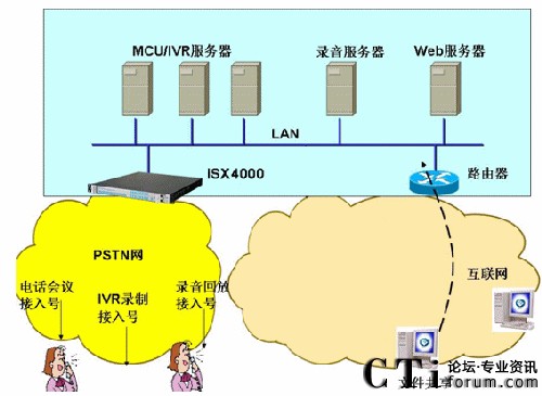 STOP SERVICE)平臺,是當(dāng)前和未來電信運營商(TCO)及虛擬服務(wù)提供商(SP/CP)增值業(yè)務(wù)規(guī)劃的最佳選擇,特別是中國重組后的3大運營商都具備全業(yè)務(wù)運營資格,正在規(guī)劃前所未有的全業(yè)務(wù)運營平臺(融合有線和無線、融合語音和數(shù)據(jù)、融合2G和3G、融和傳統(tǒng)PSTN和NGN網(wǎng)絡(luò)、融合電信網(wǎng)和互聯(lián)網(wǎng)),怎樣的設(shè)備才能問鼎和支撐這樣的全業(yè)務(wù)平臺?不妨仔細研究ISX4000的豪華單機和級聯(lián)配置:單機支持最大128E1(SS7、PRI)光電接口接入、4096路語音資源、4096路會議資源、多達6464路IP(G.711-6464路、G.729-2688路、G.723-2048路)、768路傳真資源、1280路FSK資源(用于E-POS)、1024路視頻資源。通過簡單易用的管理維護工具OAM可以對上述資源任意組合、動態(tài)配置、平滑升級。不僅如此,ISX4000本機同步配置的DSP采用高性能的回聲消除和音質(zhì)增強(EC