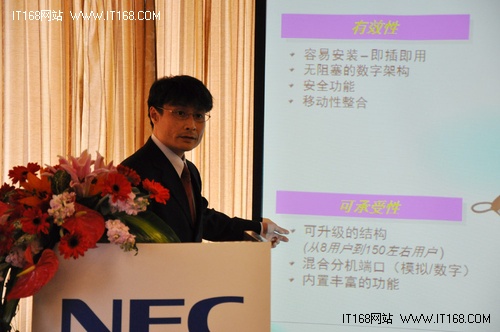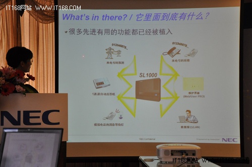橋沢太一郎先生在發(fā)布會上表示,全新的SL1000注入了諸多先進技術和NEC十幾年在亞洲市場上的經(jīng)驗。它不是一個簡單的電話產品,而是一款卓越的通信服務器。NEC為它提供IP和遠距離監(jiān)控功能,配合NEC的UC(統(tǒng)一通信)應用程序能實現(xiàn)更加有效的工作方式。